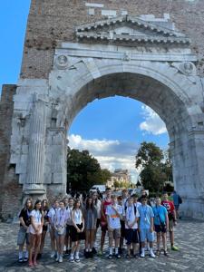 Dzień dzisiejszy przywitaliśmy w Rimini poznając historię kolonii rzymskich. Pani przewodnik przybliżyła nam postacie zasłużone dla Rimini - Oktawiana Augusta oraz Juliusza Cezara który wygłosił na placu tego rzymskiego miasta słynne motto: Kości zostały rzucone. Zwiedziliśmy rynek, starożytną agorę, Most Tyberiusza, Domostwo Eutykesa, Łuk Augusta, katedrę ufundowaną przez rodzinę Malatesta. Po intensywnym dniu odpoczęliśmy na brzegu Adriatyku.
