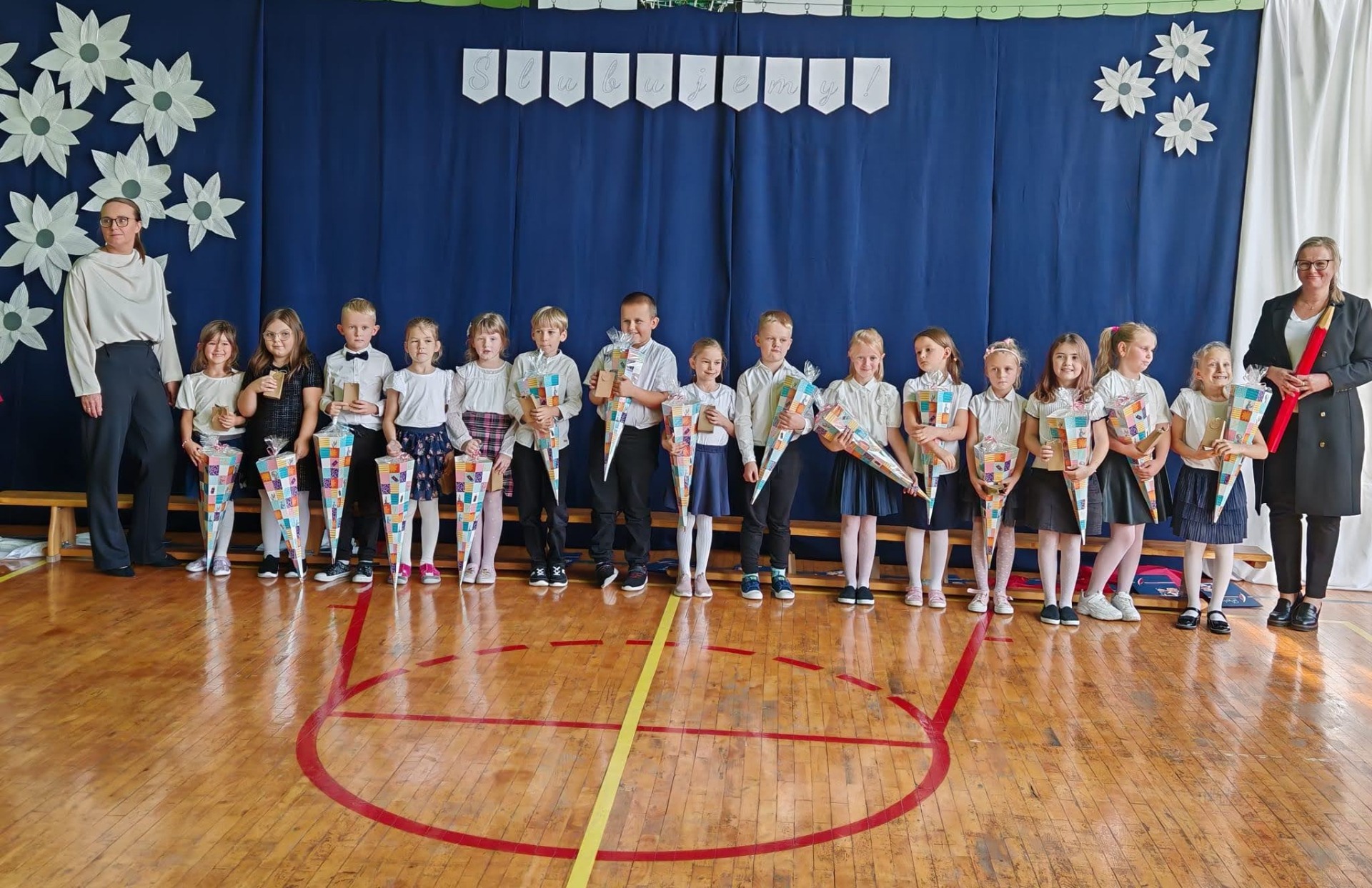 W poniedziałek 13.10.2025 r. pierwszoklasiści złożyli uroczystą przysięgę i zostali pasowani na uczniów naszej szkoły. Przed ślubowaniem uczniowie zaprezentowali swoje umiejętności artystyczne w krótkim występie. Gratulujemy wszystkim uczniom klasy pierwszej!