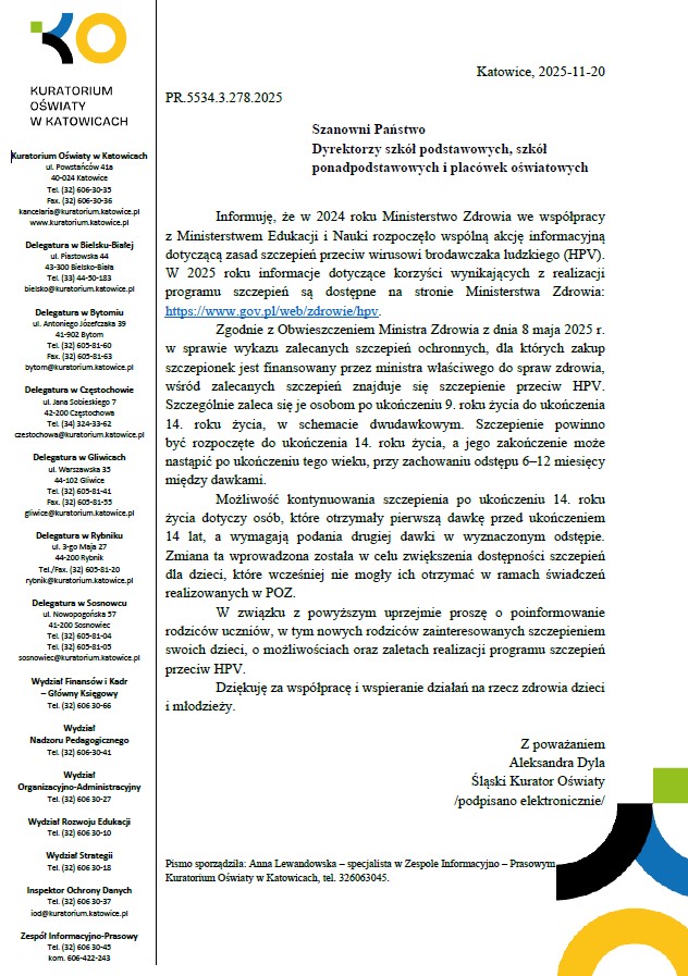 Szczepienia przeciw wirusowi brodawczaka ludzkiego (HPV)