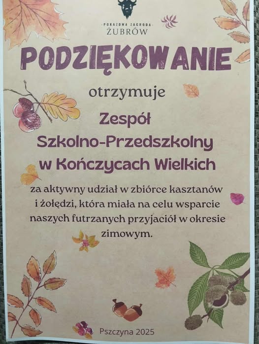 Dziękujemy wszystkim zaangażowanym w zbiórkę żołędzi i kasztanów dla Pokazowej Zagrody Żóbrów w Pszczynie.