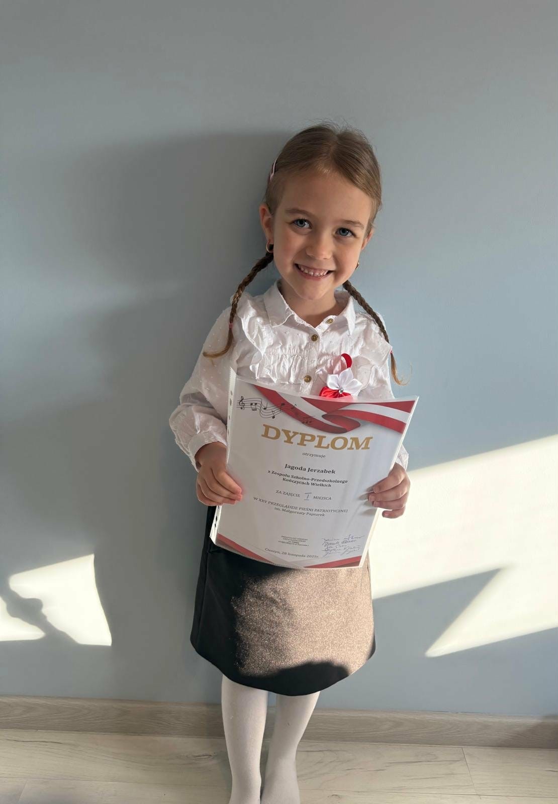 Gratulacje dla Jagódki Jerzabek za zajęcie I miejsca w XXV PRZEGLĄDZIE PIEŚNI PATRIOTYCZNEJ im. Małgorzaty Papiurek